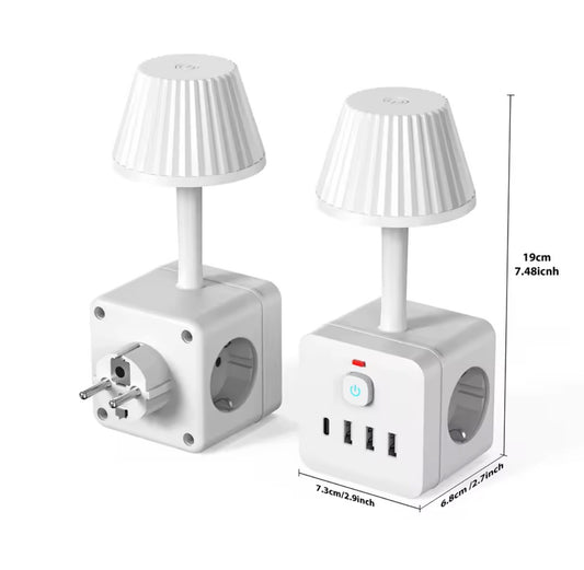 Lámpara de Escritorio con 3 Enchufes y USB-C | Luz Regulable y Protección Sobrecarga