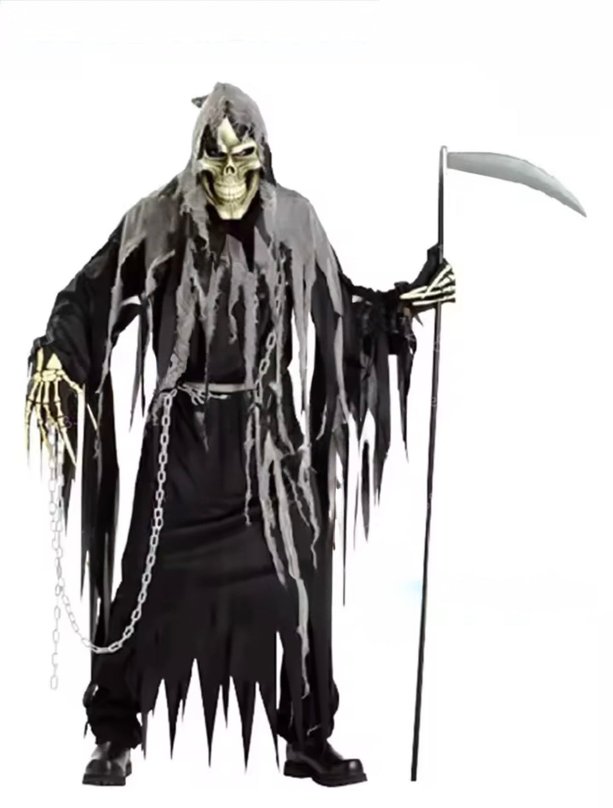 Disfraz de fantasma y esqueleto de Halloween 💀 | Dios de la Muerte con bata y hoz para adultos